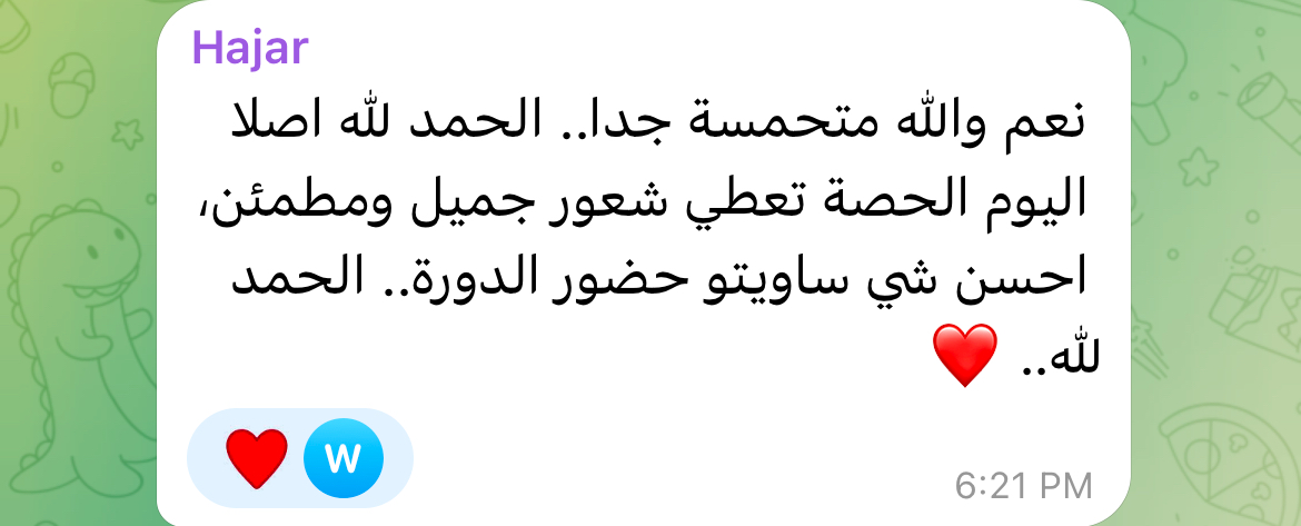 حبيت الدورة وايد مع اني كنت ماخذة دورة تعلق قبلها بس من خلصت التمارين كنت حاسة بضياع و تشتت و ما كنت ادري