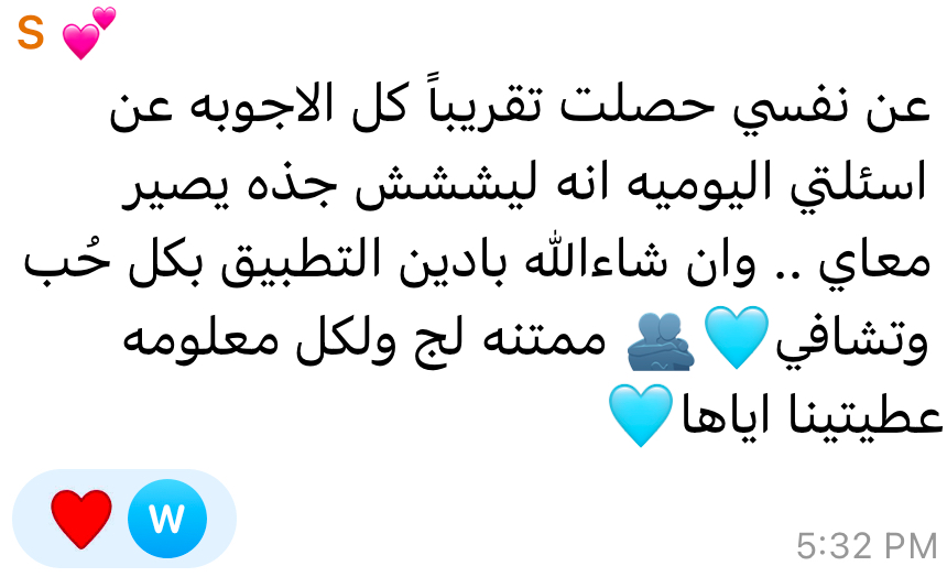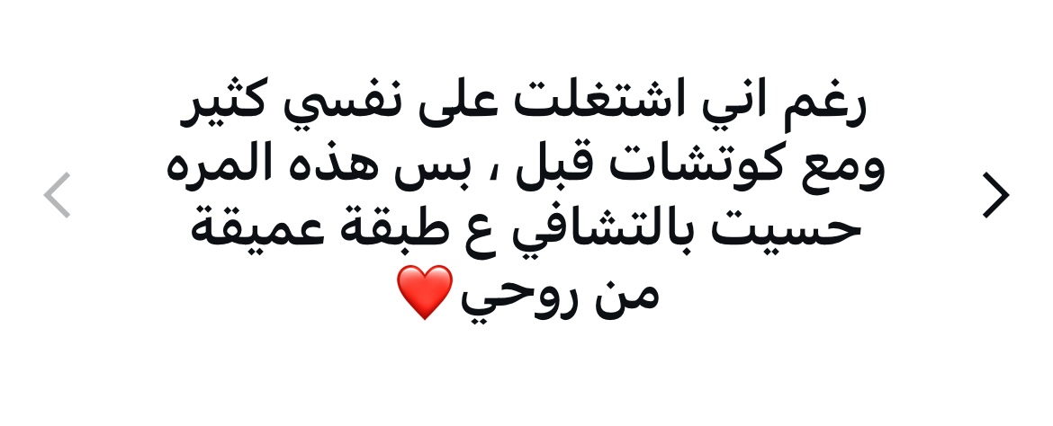 و جلساتي مع الأستاذة حوراء بالنسبة لي نور من رب العالمين أرشدني لطريق التوازن والاستقامة. كانت هذي النية دائماً موجودة في روحي، كيف أعرف نفسي؟ كيف أحبها؟ كيف أقدرها؟