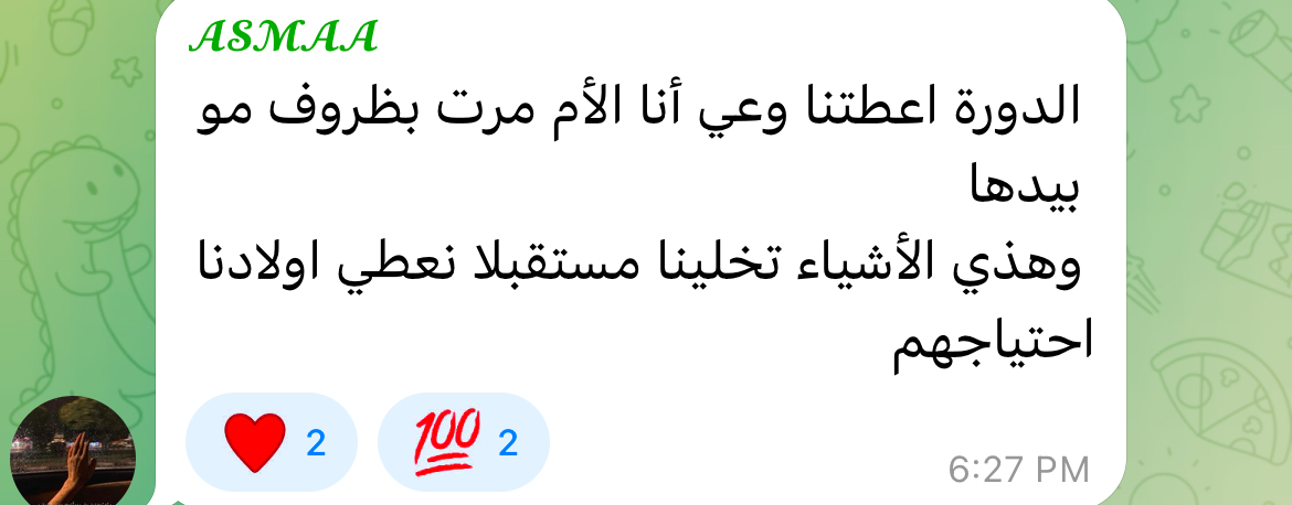أستاذة حوراء كانت معي في كل خطوة من الدورة ورأت الأثر العميق إلي جالسة تحدثه بداخلي بفضل هذي الدورة
